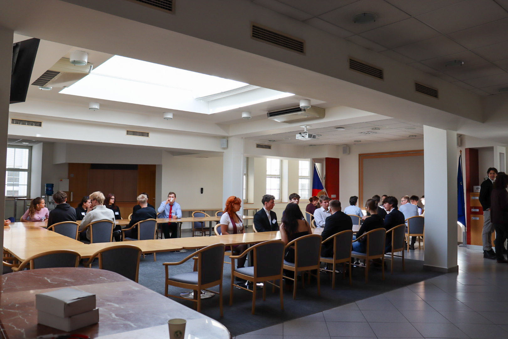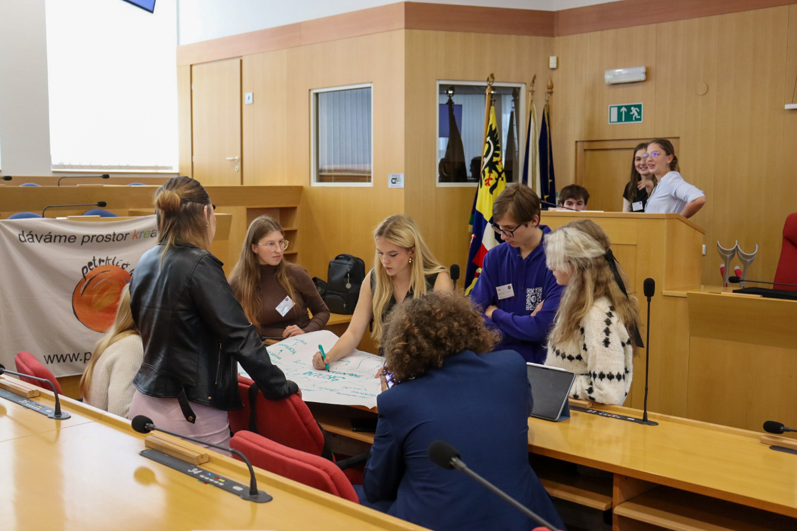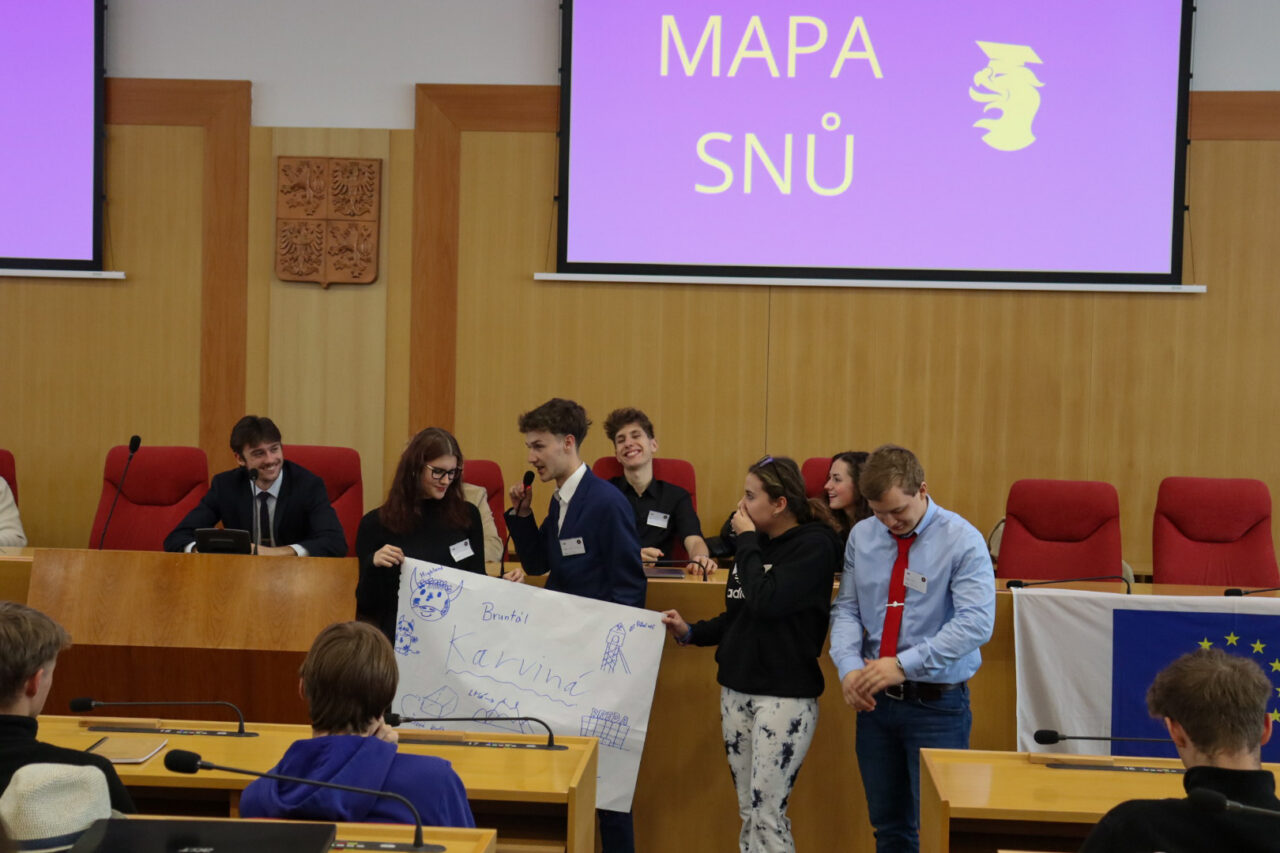 3. listopadu se na Krajském zastupitelstvu v Ostravě uskutečnilo první zasedání letošního školního roku. Účastníci se v hlavní zasedací místnosti začali scházet již po deváté hodině ráno, kde je zanedlouho čekalo zahájení a úvodní slovo předsedy. Po krátkém představení Rady se slova ujali naši dva hosté, kteří přijeli z Republikového fóra parlamentů dětí a mládeže – a to jeho dva nově zvolení mluvčí, Tonda a Adam. S Fórem MoRS plánuje udržovat blízký kontakt a na zasedání jsme se dohodli na další spolupráci. Pár slovy také přispěli zástupci České středoškolské unie a střediska Petrklíč.
